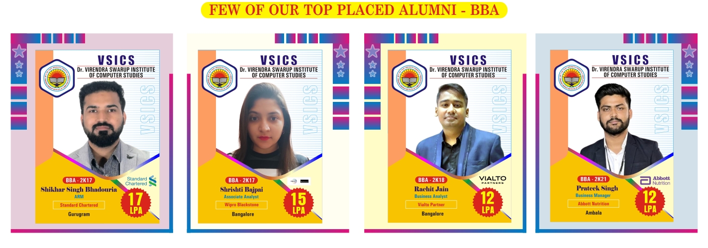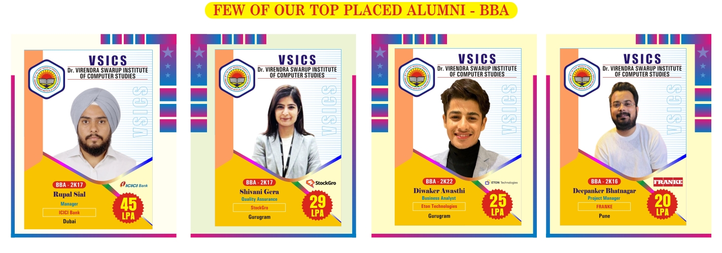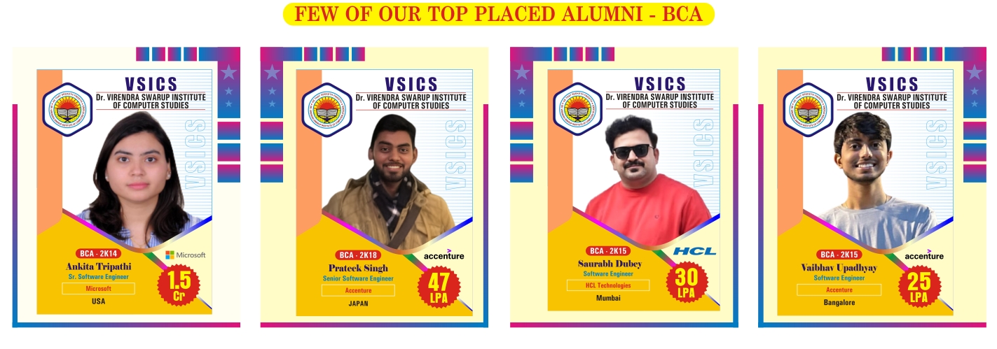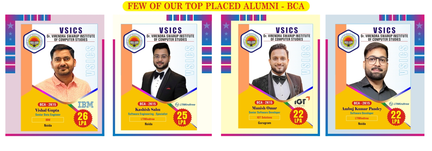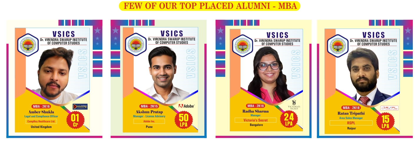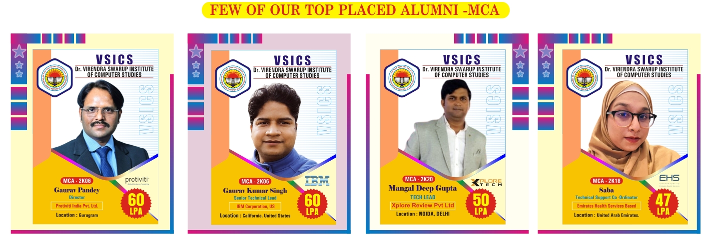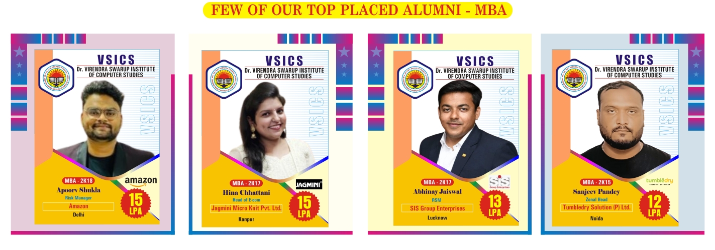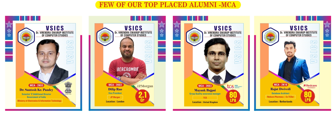 Dr. Virendra Swarup Educational Foundation, Uttar Pradesh (VSEF) was established in the year 1989 in the memory of Late Dr. Virendra Swarup, MLC & Chairman of Uttar Pradesh Legislative Council and an eminent educationist. Dr. Virendra Swarup Institute of Computer Studies is a part of VSEF. The foundation is also running 10+2 schools in Kanpur and other cities of Uttar Pradesh. VSEF is a sister concern of Dayanand Siksha Sansthan, Uttar Pradesh., which is managing more than 25 post graduate and intermediate colleges all over Uttar Pradesh & Uttarakhand. VSICS is the first self-financed institute in Kanpur to impart computer education in the form of MCA. The institute has achieved the distinction of being ISO 9001:2000 certified for providing quality education by maintaining quality services and processes. VSICS in a span of more than 27 years has gained immense recognition as a center of excellence. Its MCA, MBA, BCA & BBA programmes has been designed to create the best talent in the IT & Management field.